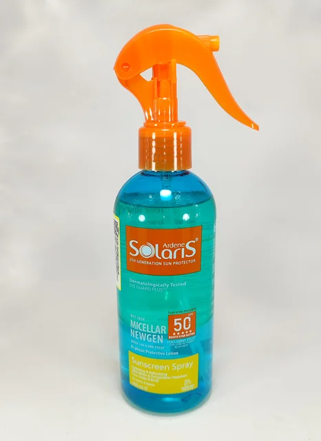 به دنبال یک ضد آفتاب سبک با پخش سریع هستید؟ پیشنهاد ما به شما استفاده از اسپری ضد آفتاب دوفاز میسلار نیوژن SPF50 سولاریس آردن است. کافیست تا قبل از استفاده به خوبی آن را تکان دهید تا دو فاز آب و روغن باهم مخلوط شود. بافت بسیار سبک و جذب سریع آن بر روی پوستتان، شما را شگفت زده خواهد کرد؛ ضد آفتاب دو فاز آردن بدون ایجاد حالت چسبندگی یا حالت براق بر روی پوست، پوستتان را مرطوب میکند.