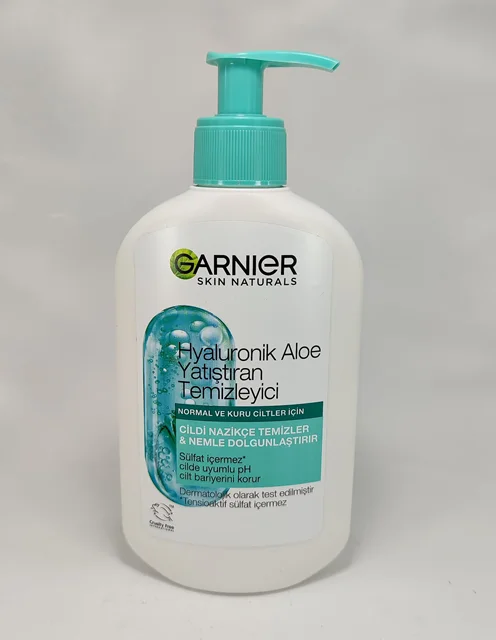 ژل پاک کننده تسکین دهنده آلوئه ورای هیالورونیک گارنیر با بافت کرمی 250 میلی لیتر - پوست را کاملا تمیز و آبرسانی کرده و ساختار آن را تسکین و بهبود می بخشد. این ژل برای پوست های معمولی و خشک مناسب است.
