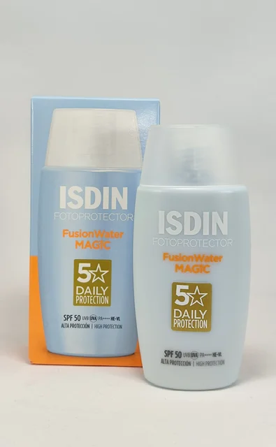 ضدآفتاب فیوژن واتر ایزدین مجیک یک ضدآفتاب سبک روزانه با بافت آبکی و فوق سبک است که برای محافظت روزانه و فعالیتهای خارج از خانه طراحی شده و برای همه انواع پوست، بهویژه ضدآفتاب برای پوست چرب، ضدآفتاب پوست حساس و ضدآفتاب برای پوست مختلط، مناسب است. این محصول با ++++ SPF50+ PA محافظت گستردهای در برابر اشعههای UVA و UVB ارائه میدهد و با فرمولاسیون آبکی، بهسرعت جذب پوست شده و هیچ اثر چرب یا سفیدک بهجا نمیگذارد. این ضدآفتاب بدون سفیدک، ساخت اسپانیا توسط برند ISDIN است که بر همکاری با متخصصان پوست و فرمولاسیونهای پیشرفته تمرکز دارد.