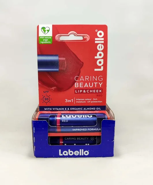 بالم لب CARING BEAUTY لبلو 3 کاره قرمز Labello Caring Beauty Lip & Cheek Red یک بالم لب چندکاره است که هم رنگ طبیعی به لبها میدهد و هم قابلیت استفاده به عنوان رژ گونه ملایم را دارد. این محصول با ترکیبی از روغنهای گیاهی مانند روغن کرچک، بادام، شیا باتر و ویتامین E، لبها را نرم و مرطوب نگه میدارد و از خشکی و پوستهپوسته شدن جلوگیری میکند. این فرمول فاقد پارافین است و برای پوست حساس مناسب طراحی شده است.