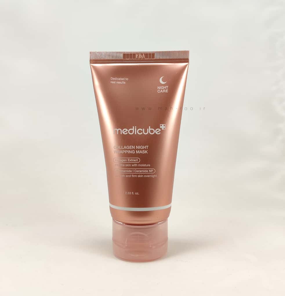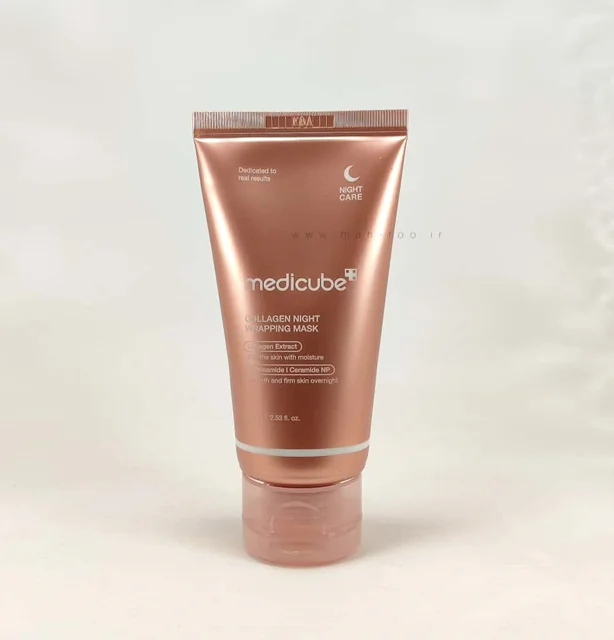 ماسک شب کلاژن مدیکیوب Medicube Collagen Night Wrapping Mask یک درمان تخصصی شبانه برای بازسازی و سفت کردن پوست است. این محصول با فرمولی نوآورانه به شکل پیل آف (wrapping film) طراحی شده که پس از اعمال روی پوست، تبدیل به لایهای نازک میشود و تا صبح روی پوست باقی میماند تا تمامی ترکیبات فعال را آزاد کند. ترکیبات اصلی این ماسک شامل کلاژن، هیالورونیک اسید، نیاسینامید، آدنوزین و سرامید NP هستند که بهطور همزمان رطوبترسانی عمیق، ارتجاع پوست را افزایش و خطوط ظریف را کاهش میدهند. این ماسک مخصوص استفادهٔ شبانه است و پس از خواب، صبح میتوان آن را لایهبرداری یا با آب ولرم شستوشو داد. مناسب برای انواع پوست، بهویژه نواحی خشک، شلشده یا کمآب.