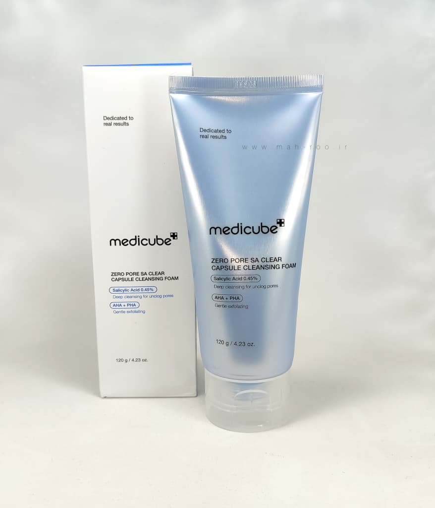 فوم شستشوی صورت کپسولی سالیسیلیک اسید مدیکیوب Medicube Zero Pore SA Clear Capsule Cleansing Foam یک محصول تخصصی کرهای است که با هدف پاکسازی عمیق منافذ، کاهش بروز جوشهای سرسیاه و سفید و یکنواخت کردن بافت پوست طراحی شده است. این فوم پاککننده ترکیبی از اسید سالیسیلیک (BHA)، AHA و PHA را داراست که بهطور کلی به رفع چربی اضافی، حذف سلولهای مرده و افزایش روشنایی پوست کمک میکنند. یکی از ویژگیهای برجسته این محصول، وجود «کپسولهای میکرو بلو اکزوزوم» است که اندازهشان حدود ۵۰۰ برابر کوچکتر از منافذ پوست است و به رفع ناخالصیها درون منافذ کمک میکند.