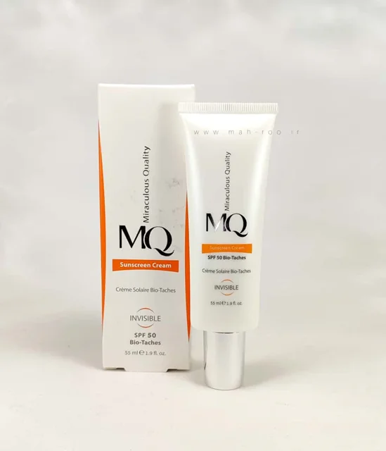 کرم ضد آفتاب ضد لک ام کیو مدل بایوتچ Bio Taches SPF50، یک محصول با دو عملکرد ضد آفتاب و ضد لک، یکی از بهترین انواع ضد آفتابهای ساخت ایران است که علاوه بر محافظت از پوست، در رفع انواع لک ناشی از آفتاب، افزایش سن، جای جوش و … موثر است. این محصول محافظت کاملی را در برابر اشعههای مضر UVA/UVB برای پوست فراهم میکند و از بروز علائم پیری، ایجاد لک و چین و چروک جلوگیری میکند. ضد آفتاب ام کیو بافت سبک و کرمی دارد و در دو مدل رنگی(بژ روشن و بژ طبیعی) و بی رنگ طراحی شده است و با پوشانندگی بالایی که دارد سطح پوست را صاف و یکدست نشان میدهد.