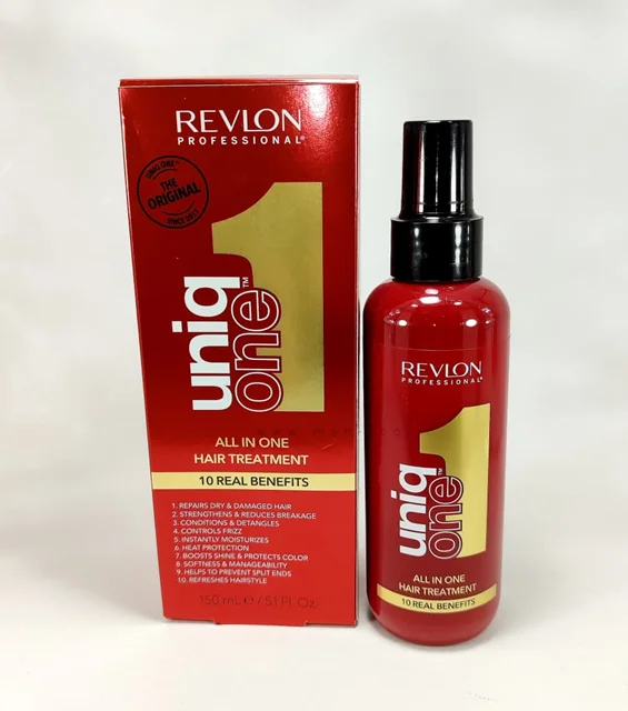اسپری مو ده کاره یونیک وان رولون REVLON Uniq One All in One Hair Treatment یک درمان حرفهای است که ۱۰ مزیت کلیدی را همزمان ارائه میدهد: ترمیم خشکی و آسیب، تقویت و کاهش شکستگی، نرمکنندگی و آسانشانه شدن، کنترل وز، آبرسانی فوری، محافظت حرارتی، درخشش و محافظت از رنگ، نرمی و سهولت حالتدهی، کمک به پیشگیری از موخوره و تازهسازی مدل مو. فرمول این محصول برای انواع مو مناسب است و استفاده از آن روی موی مرطوب یا خشک امکانپذیر است.