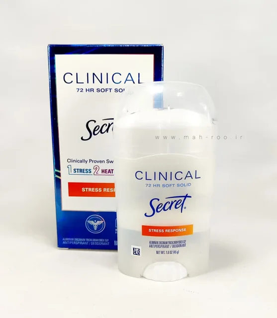 مام کلینیکال سکرت مدل STRESS RESPONSE برای کنترل تعریق شدید و بوی بدن در شرایط پراسترس طراحی شده است. این نسخه کلینیکال تا ۷۲ ساعت در برابر عرق و بو محافظت میکند و طبق توضیحات رسمی برند، با سه نوع تعریق ناشی از استرس، گرما و فعالیت مقابله میکند. بافت سافت سالید بهنرمی روی پوست مینشیند، روی لباس رد سفید یا زرد باقی نمیگذارد و برای استفاده روزانه ایدهآل است.